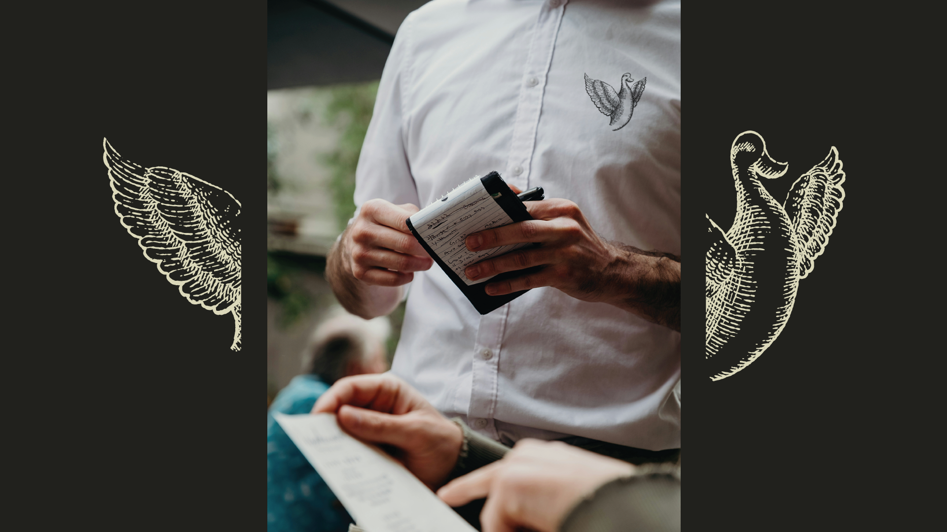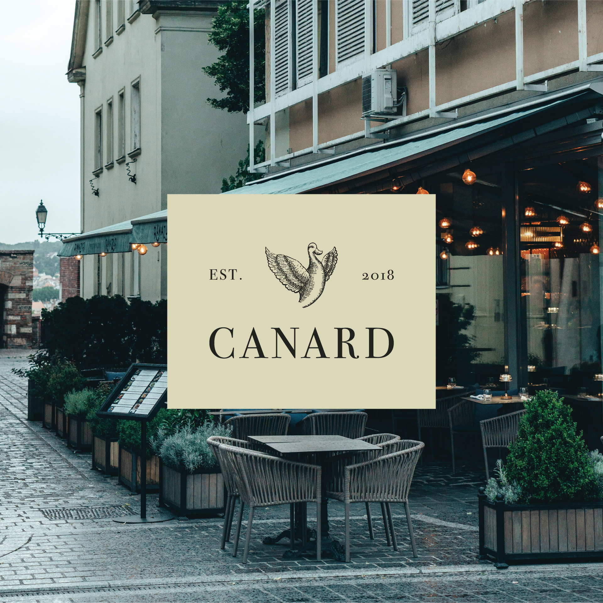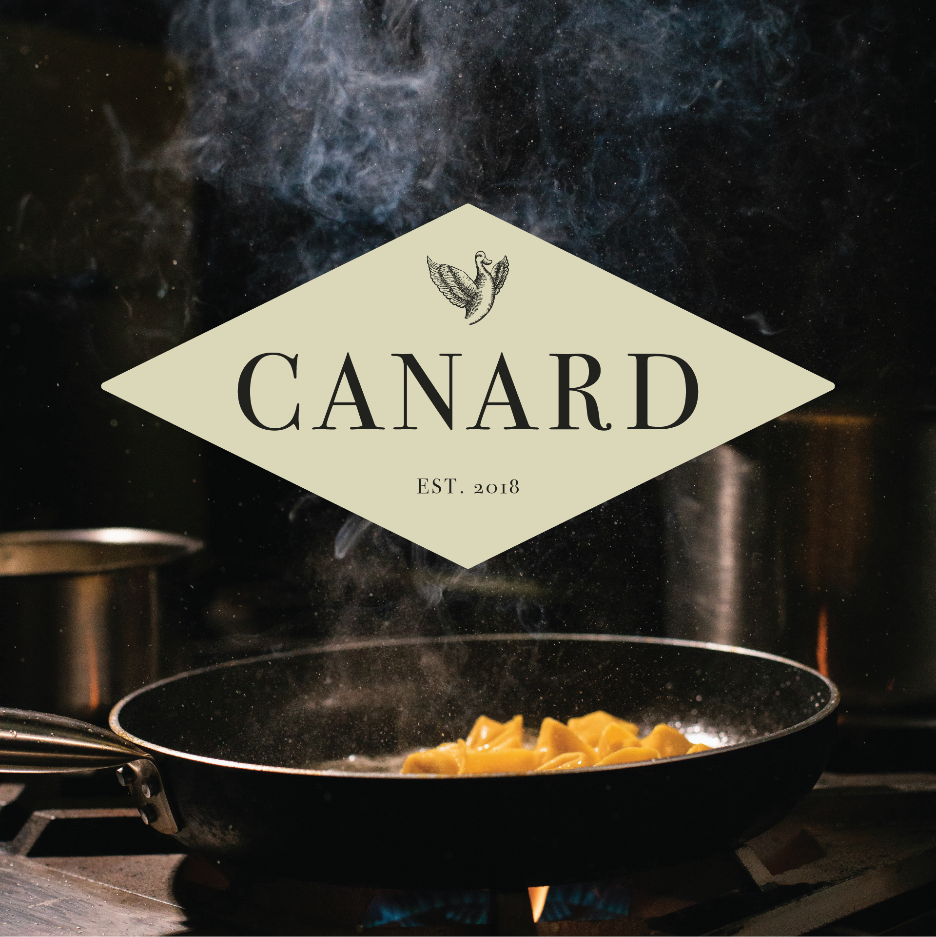 For this logo, it was important to establish a love for the ingredients that support a fine dining experience. The duck's outstretched wings invoke a heart.